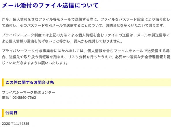 「(PPAP方式を)従来から推奨していない」旨の見解を述べています。